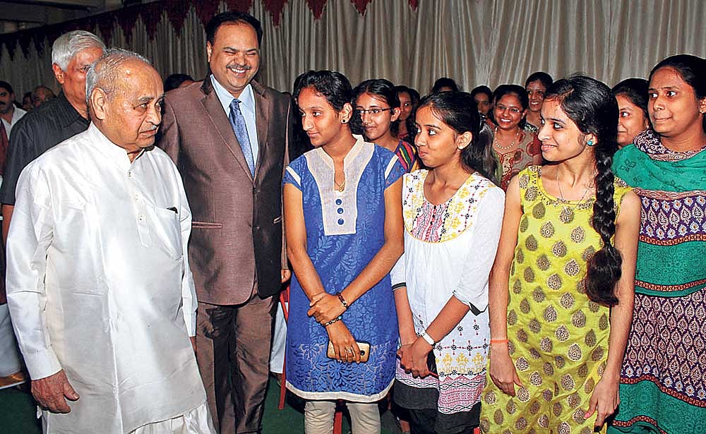 ಬೆಂಗಳೂರು ನಗರದ ಬನಶಂಕರಿಯ ಎಸ್.ಎನ್.ಭಟ್ ಅಕಾಡೆಮಿಯಲ್ಲಿ ಶುಕ್ರವಾರ ಆಯೋಜಿಸಿದ್ದ ಸನ್ಮಾನ ಸಮಾರಂಭದಲ್ಲಿ ನಿವೃತ್ತ ನ್ಯಾಯಮೂರ್ತಿ ಎಂ.ರಾಮಾಜೋಯಿಸ್ ಅವರು ಪಿಯುಸಿಯಲ್ಲಿ ರಾಜ್ಯಮಟ್ಟದಲ್ಲಿ ಅತ್ಯಧಿಕ ಅಂಕಪಡೆದ ವಿದ್ಯಾರ್ಥಿಗಳನ್ನು ಅಭಿನಂದಿಸಿದರು. ಪ್ರಾಂಶುಪಾಲ ಎಸ್.ಎನ್.ಭಟ್ ಚಿತ್ರದಲ್ಲಿದ್ದಾರೆ- ಪ್ರಜಾವಾಣಿ ಚಿತ್ರ