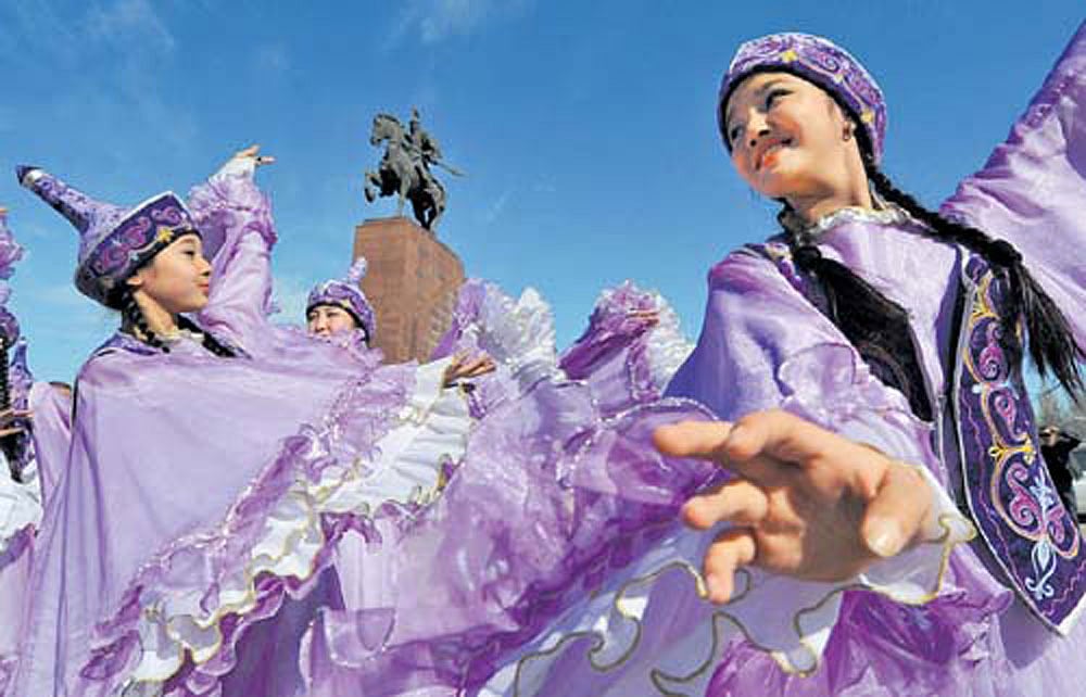 ಕಿರ್ಗಿಸ್ತಾನದಲ್ಲಿ ಹೊಸವರ್ಷದ ಪ್ರಯುಕ್ತ ರಾಜಧಾನಿ ಬಿಷ್ಕೆಕ್‌ನ ಅಲ್–ಟೂ ಚೌಕದಲ್ಲಿ ಯುವತಿಯರು ಸಾಂಪ್ರದಾಯಿಕ ಉಡುಗೆ ತೊಟ್ಟು ಸಂಭ್ರಮಿಸಿದರು. –ಎಎಫ್‌ಪಿ ಚಿತ್ರ