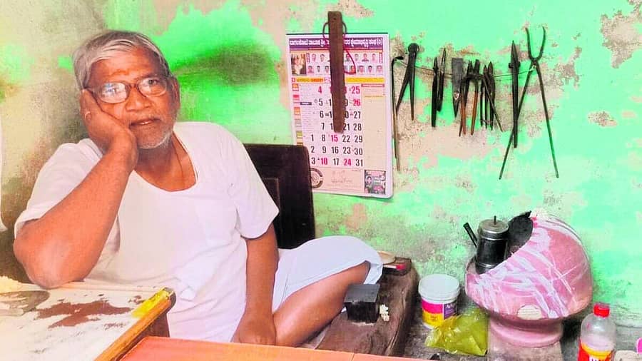 ಬಾಗಲಕೋಟೆಯ ಚಿನ್ನ, ಬೆಳ್ಳಿ ದುರಸ್ತಿ ಅಂಗಡಿಯಲ್ಲಿ ಗ್ರಾಹಕರಿಗಾಗಿ ಕಾಯುತ್ತಿರುವ ಅಕ್ಕಸಾಲಿಗ
