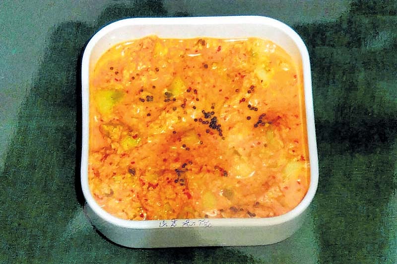 ತಯಾರಿಸುವ ವಿಧಾನ: ಕಡ್ಲೆಬೇಳೆ ಮತ್ತು ಕೆಂಪು ಮೆಣಸನ್ನು ಮೊದಲು ಹುರಿದಿಟ್ಟುಕೊಳ್ಳಿ. ನಂತರ ಮಿಕ್ಸಿಗೆ ಹುರಿದಿಟ್ಟುಕೊಂಡ ಸಾಮಗ್ರಿಗಳು, ಇಂಗು, ಕಾಯಿತುರಿ, ಉಪ್ಪು, ಹುಣಸೆಹಣ್ಣು ಸೇರಿಸಿ ರುಬ್ಬಿಕೊಳ್ಳಿ. ಆ ಮಿಶ್ರಣಕ್ಕೆ ಸೌತೆಕಾಯಿ ಮತ್ತು ಸಿಡಿಸಿದ ಸಾಸಿವೆ ಸೇರಿಸಿ ಕಲೆಸಿ. ಇದು ಅನ್ನಕ್ಕೆ ಹೊಂದುತ್ತದೆ.