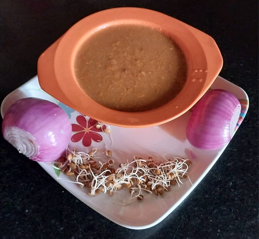 ಮೊಳಕೆ ಕಟ್ಟಿದ ಹುರುಳಿ ಕಾಳಿಗೆ 2–3 ಲೋಟ ನೀರು, ರುಚಿಗೆ ತಕ್ಕಷ್ಟು ಉಪ್ಪು ಸೇರಿಸಿ ಚೆನ್ನಾಗಿ ಬೇಯಿಸಿಕೊಳ್ಳಿ.