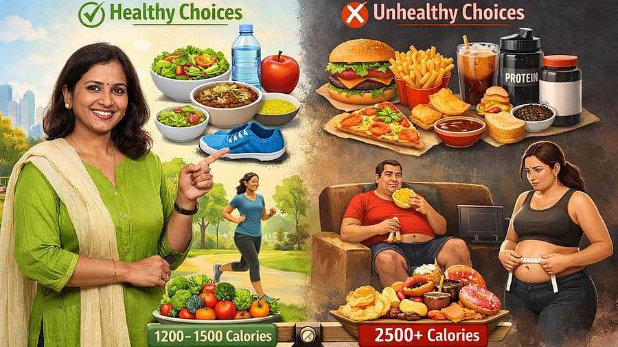 ಹೆಚ್ಚುವರಿ ತೂಕವನ್ನು ನಾವು ಇಳಿಸಿಕೊಳ್ಳಲೇಬೇಕು, ಅದರಲ್ಲಿ ಯಾವುದೇ ಅನುಮಾನವೇ ಇಲ್ಲ. ಆದರೆ ನಾವು ಯಾಕೆ ತೆಳ್ಳಗಾಗಬೇಕು? ಒಬ್ಬೊಬ್ಬರದು ಒಂದೊಂದು ಕಾರಣ. ನೋಡಲು ಚೆಂದ ಕಾಣಬೇಕು, ದೈನಂದಿನ ಕೆಲಸ ಕಾರ್ಯಗಳು ಸರಾಗವಾಗಿ ಮಾಡಿಕೊಳ್ಳಲು ಆಗಬೇಕು, ನಾನು ಇಷ್ಟಪಟ್ಟ ಡ್ರೆಸ್ ಅನ್ನು ನನಗೆ ಹಾಕಿಕೊಳ್ಳಲು ಅನುಕೂಲವಾಗಬೇಕು ಅಥವಾ ವೆಲ್ ಡ್ರೆಸ್ಡ್ ಆಗಿ ಇರಬೇಕು, ನನ್ನ ಹುಡುಗ/ಹುಡುಗಿಗೆ ನಾನು ಮ್ಯಾಚ್ ಆಗಬೇಕು...ಇವಿಷ್ಟೇ ಕಾರಣವಲ್ಲ, ಇತ್ತೀಚಿನ ದಿನಗಳಲ್ಲಿ ಸನ್ನಿವೇಶಕ್ಕೆ ತಕ್ಕಂತೆ ಜನ ತೆಳ್ಳಗೆ ಅಥವಾ ದಪ್ಪಗೆ ಆಗಬೇಕೆಂದು ಬಯಸುತ್ತಿದ್ದಾರೆ. ಉದಾಹರಣೆಗೆ ಯಾವುದೋ ಈವೆಂಟ್ ಇದೆ, ಸಿನಿಮಾ–ಧಾರಾವಾಹಿ ಕ್ಯಾರೆಕ್ಟರ್ಗೆ ಒಂದು ತಿಂಗಳಲ್ಲಿ 10 ಕೆ.ಜಿ ಹೆಚ್ಚು ಮಾಡಿಕೊಳ್ಳಲೇಬೇಕಿದೆ. ಮುಂದಿನ ತಿಂಗಳು ಅಕ್ಕನ ಮದುವೆ ಇದೆ, ಅಷ್ಟರೊಳಗೆ ಒಂದು ಐದು ಕೆ.ಜಿ ಆದ್ರೂ ಇಳಿಸಿಕೊಳ್ಳಬೇಕು. ಬ್ರೇಸರ್ ಹಾಕ್ಕೊಂಡ್ರೆ ಚೆನ್ನಾಗಿರಲ್ಲ, ಅದಕ್ಕ ಸೊಲ್ಪ ಹೊಟ್ಟೆ ಕರಗಿಸಬೇಕು... ಹೀಗೆ ತೂಕ ಇಳಿಸಿಕೊಳ್ಳಲು ಹಾಗೂ ಹೆಚ್ಚಿಸಿಕೊಳ್ಳಲು ಜನಕ್ಕೆ ಹತ್ತಾರು ಕಾರಣಗಳು ಸಿಗುತ್ತವೆ.