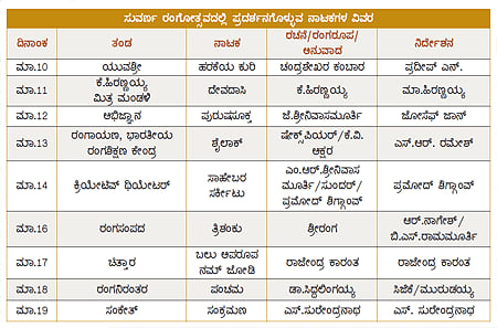 ಇದೀಗ ‘ನಾಟಕ ಬೆಂಗಳೂರು’ ತಂಡ ಮಾ.10ರಿಂದ ಮಾ.19ರವರೆಗೆ ಆಯೋಜಿಸಿರುವ ರಂಗೋತ್ಸವ ಇದಕ್ಕೆ ಹೊಸ ಸೇರ್ಪಡೆ. ರಂಗೋತ್ಸವದಲ್ಲಿ ದಿನವೂ ತಲಾ ಒಂದರಂತೆ ಒಟ್ಟು ಒಂಬತ್ತು ನಾಟಕಗಳು ಪ್ರದರ್ಶನಗೊಳ್ಳಲಿವೆ. ಪ್ರತಿದಿನ ಸಂಜೆ ೭ಕ್ಕೆ ನಾಟಕ ಆರಂಭ.