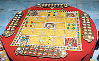 ಆ ಚದುರಂಗ ಪಟದ ಮುಂದೆ ಕುಳಿತರೆ ಥೇಟ್ ಪೌರಾಣಿಕ ಕಾಲದ ಯುದ್ಧಭೂಮಿಯಲ್ಲಿರುವ ಅನುಭವ. ಅಂಬಾರಿಯಲ್ಲಿ ಆಸೀನನಾಗಿದ್ದ ರಾಜನಿದ್ದ, ಆತನ ಪಕ್ಕದ ಆನೆಯ ಮೇಲೆ ಮಂತ್ರಿ ಕೂಡ ಸನ್ನದ್ಧನಾಗಿದ್ದ. ಸಾಲಂಕೃತ ಕುದುರೆ, ಒಂಟೆ, ಆನೆಗಳಿದ್ದವು. ಇವರೆಲ್ಲರ ಮುಂದಿನ ಸಾಲಿನಲ್ಲಿ ಕತ್ತಿ, ಗುರಾಣಿ ಹಿಡಿದ ಪದಾತಿದಳವೂ ಅಲ್ಲಿತ್ತು. ಕಪ್ಪು-ಬಿಳುಪಿನ ಕಾಯಿನ್ಗಳಿರುವ ಚೆಸ್ ಬೋರ್ಡ್ ನೋಡಿದವರ ಪಾಲಿಗೆ ಕೌತುಕದ ವಸ್ತುವಾಗಿತ್ತು.