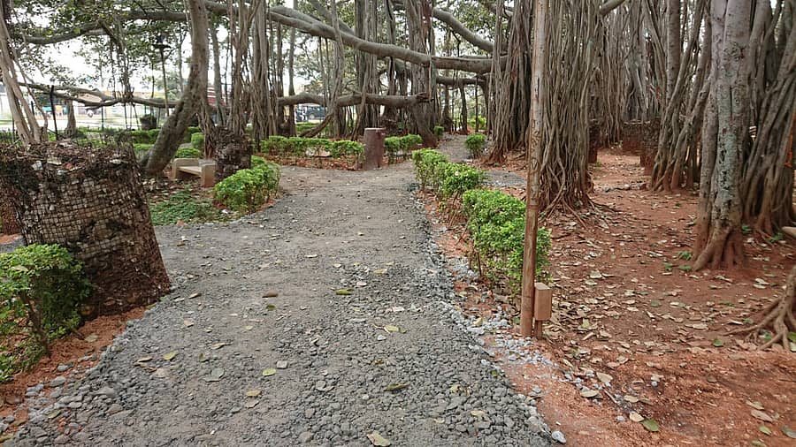 ಮಳೆಯಲ್ಲಿ ನೆನೆದ ಸುಂದರಿಯ ಕೂದಲಿನಿಂತೆ ನೆಲದವರೆಗೂ ಇಳಿದಿರುವ ಬೀಳಲುಗಳನ್ನು ನೋಡುವುದು ಕಣ್ಣಿಗೆ ಹಬ್ಬ. ತಾಯಿ ಮರದೊಂದಿಗೆ ಸಂಪರ್ಕ ಇರಿಸಿಕೊಂಡಿರುವ ಕಾಂಡಗಳು ಅಲ್ಲೇ ಹೊಸ ಸಂಸಾರವನ್ನು ಕಟ್ಟಿಕೊಂಡಿವೆ. ಮರದ ನಡುವೆ ನಿರ್ಮಿಸಲಾಗಿರುವ ನಡಿಗೆ ಮಾರ್ಗದಲ್ಲಿ ಸಾಗಿದರೆ ಚೇತೋಹಾರಿ ಅನುಭವ. ಉದ್ಯಾನದ ಮಾದರಿಯಲ್ಲಿ ಸ್ಥಳವನ್ನು ಅಭಿವೃದ್ಧಿ ಪಡಿಸಲಾಗಿದ್ದು, ಮರದ ಬುಡದ ನಡುವೆ ಹಲವು ಗಿಡಗಳನ್ನು ನೆಟ್ಟು ಪೋಷಿಸಲಾಗುತ್ತಿದೆ. ಪ್ಲಾಸ್ಟಿಕ್ ಮುಕ್ತ ಪರಿಸರವಾಗಿದ್ದರೂ ಆ ಕುರಿತಾದ ಅಸಡ್ಡೆ ಎದ್ದು ಕಾಣಿಸುತ್ತದೆ. ವಿಶ್ರಮಿಸಲು ಅಲ್ಲಲ್ಲಿ ಕಲ್ಲಿನ ಬೆಂಚುಗಳಿವೆ. ಫೋಟೊ, ರೀಲ್ಸ್ ಪ್ರಿಯರಾಗಿದ್ದರೆ ಹತ್ತಾರು ಚೆಂದದ ದೃಶ್ಯಗಳಿವೆ. ಮೊಬೈಲು, ಕ್ಯಾಮೆರಾ, ಸೆಲ್ಫಿ ಸ್ಟಿಕ್ಗಳನ್ನು ಕೊಂಡೊಯ್ಯಬಹುದು. ಪ್ರವೇಶವೂ ಉಚಿತ.