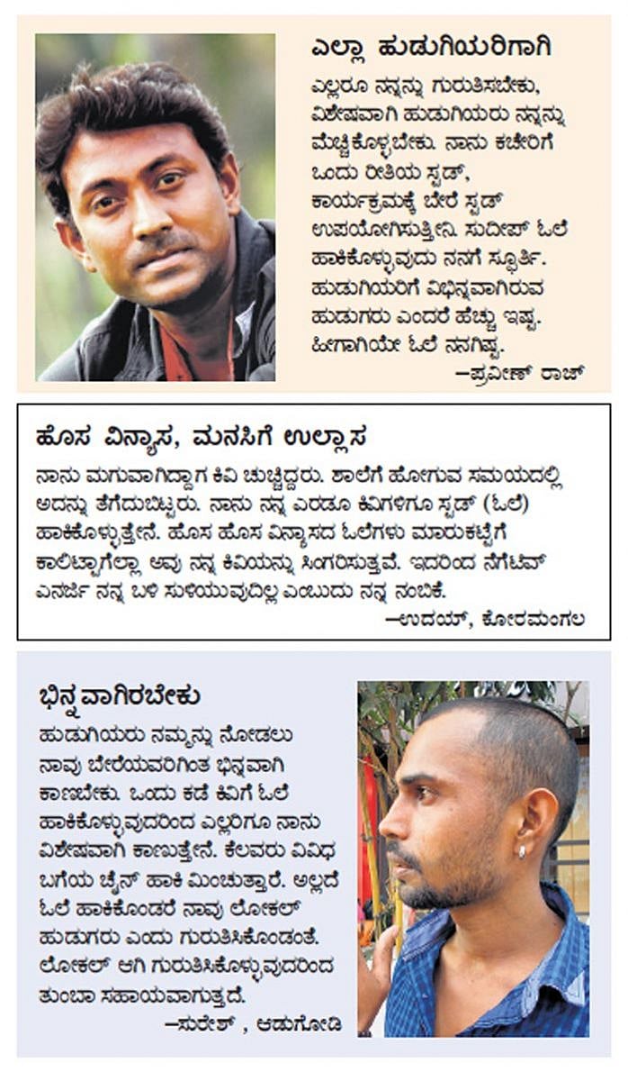 ಹಿಂದೂಗಳಲ್ಲಿ ಪುಟ್ಟ ಮಕ್ಕಳಿಗೆ ಕಿವಿ ಚುಚ್ಚಿ ಚಿನ್ನ, ಬೆಳ್ಳಿಯ ಓಲೆ, ಗುಂಡು ತೊಡಿಸುವುದು ಸಾಮಾನ್ಯ. ಅವರು ಬೆಳೆಯುತ್ತ ಅವುಗಳನ್ನು ತೆಗೆಯುತ್ತಾರೆ, ಕ್ರಮೇಣ ಆ ಜಾಗಕ್ಕೆ ಯುವಕರು ಫ್ಯಾಶನ್ ಹೆಸರಿನಲ್ಲಿ ಕಿವಿಗೆ ಓಲೆ ಹಾಕಿಕೊಳ್ಳಲು ಪ್ರಾರಂಭಿಸಿರುವುದು ಈಗನ ಟ್ರೆಂಡ್.