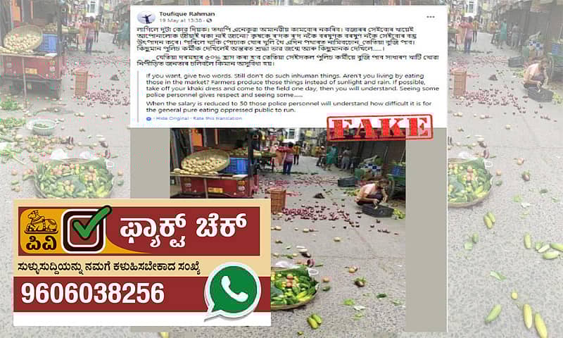 ಅಸ್ಸಾಂನಲ್ಲಿ ಕಠಿಣ ಲಾಕ್ಡೌನ್ ಹೇರುವ ಭರದಲ್ಲಿ ಪೊಲೀಸರು ತರಕಾರಿ ವ್ಯಾಪಾರಿಗಳ ಮೇಲೆ ಹಿಂಸೆ ಎಸಗಿದ್ದಾರೆ ಎಂಬುದನ್ನು ಬಿಂಬಿಸುವ ಚಿತ್ರ ವೈರಲ್ ಆಗಿದೆ. ಪೊಲೀಸರ ಈ ವರ್ತನೆಗೆ ಸಾಮಾಜಿಕ ಜಾಲತಾಣಗಳಲ್ಲಿ ಭಾರಿ ಖಂಡನೆ ವ್ಯಕ್ತವಾಗಿದೆ. ‘ಪೊಲೀಸರಿಗೆ ರೈತರು ಬೆಳೆದ ಬೆಳೆಗಳ ಬೆಲೆ ತಿಳಿದಿಲ್ಲ. ಅವರು ಖಾಕಿ ಕಳಚಿಟ್ಟು ರೈತರ ರೀತಿ ಹೊಲಕ್ಕೆ ಇಳಿದು ದುಡಿದರೆ ಗೊತ್ತಾಗುತ್ತದೆ’ ಎಂದು ಟ್ವಿಟರ್ ಬಳಕೆದಾರರೊಬ್ಬರು ಬರೆದಿದ್ದಾರೆ.