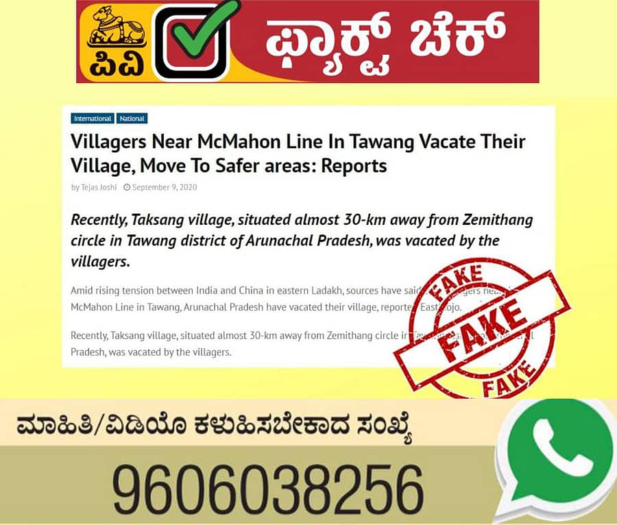 ಪೂರ್ವ ಲಡಾಖ್ನಲ್ಲಿ ಉಭಯ ದೇಶಗಳ ನಡುವೆ ಬಿಕ್ಕಟ್ಟು ಇದೆ ಎಂಬ ವರದಿ ನಿಜ. ಆದರೆ ಈ ಕಾರಣದಿಂದ ಗಡಿ ಭಾಗದ ಗ್ರಾಮಸ್ಥರು ಊರು ತೊರೆಯುತ್ತಿದ್ದಾರೆ ಎಂಬ ವರದಿ ಸತ್ಯಕ್ಕೆ ದೂರವಾದುದು ಎಂದು ಪಿಐಬಿ ಫ್ಯಾಕ್ಟ್ ಚೆಕ್ ಘಟಕ ತಿಳಿಸಿದೆ.
