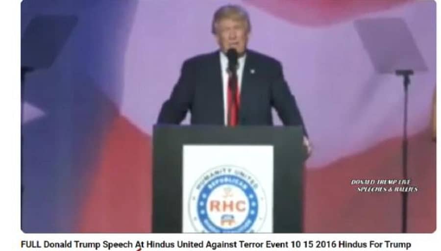 ಅಮೆರಿಕದ ಅಧ್ಯಕ್ಷೀಯ ಚುನಾವಣೆಯಲ್ಲಿ ಕಮಲಾ ಹ್ಯಾರಿಸ್ ಅವರನ್ನು ಮಣಿಸುವ ಮೂಲಕ ಡೊನಾಲ್ಡ್ ಟ್ರಂಪ್ ದಾಖಲೆ ನಿರ್ಮಿಸಿದ ನಂತರ ಅವರ ವಿಡಿಯೊ ಒಂದು ಸಾಮಾಜಿಕ ಜಾಲತಾಣಗಳಲ್ಲಿ ಹರಿದಾಡುತ್ತಿದೆ. ಚುನಾವಣೆಯಲ್ಲಿ ಗೆದ್ದ ನಂತರ ಟ್ರಂಪ್ ಅವರು ‘ನಾನು ಹಿಂದೂ ಸಮುದಾಯದ ದೊಡ್ಡ ಅಭಿಮಾನಿ ಮತ್ತು ಭಾರತದ ದೊಡ್ಡ ಅಭಿಮಾನಿ’ ಎಂದು ಹೇಳಿದ್ದಾಗಿ ವಿಡಿಯೊ ಹಂಚಿಕೊಳ್ಳುತ್ತಿರುವವರು ಪ್ರತಿಪಾದಿಸುತ್ತಿದ್ದಾರೆ. ಆದರೆ, ಇದು ಸುಳ್ಳು ಸುದ್ದಿ.