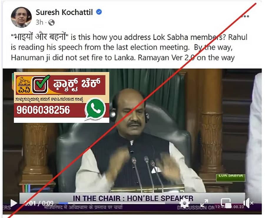 ಇತ್ತೀಚೆಗೆ ನಡೆದ ಸಂಸತ್ತಿನ ಅಧಿವೇಶನದಲ್ಲಿ ರಾಹುಲ್ ಗಾಂಧಿ ಅವರು ರಾಮಾಯಣದ ಕೆಲವು ಘಟನೆಗಳ ಕುರಿತು ಮಾತನಾಡಿದ್ದರು. ಈ ಬಗ್ಗೆ ಕೆಲವು ಪೋಸ್ಟ್ಗಳನ್ನು ಸಾಮಾಜಿಕ ಜಾಲತಾಣಗಳಲ್ಲಿ ಹಂಚಿಕೊಳ್ಳಲಾಗುತ್ತಿದೆ. ‘ಅಣ್ಣಂದಿರೇ, ತಂಗಿಯರೇ..’ ಸಂಸತ್ತಿನಲ್ಲಿ ಉದ್ದೇಶಿಸುವ ವಿಧಾನವೇ ಇದು? ಜೊತೆಗೆ, ‘ಲಂಕೆಗೆ ಹನುಮಂತ ಬೆಂಕಿ ಇಡಲಿಲ್ಲ’ ಎಂದೂ ಹೇಳಿದ್ದಾರೆ. ರಾಮಾಯಣ ವರ್ಷನ್ 2 ಬರುತ್ತಿದೆ’ ಎಂದು ಪೋಸ್ಟ್ ಮಾಡಿದ್ದಾರೆ. ಆದರೆ, ರಾಹುಲ್ ಗಾಂಧಿ ಅವರು ಈ ರೀತಿ ಮಾತನಾಡಿಲ್ಲ.