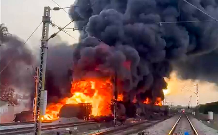 ಅಗ್ನಿಶಾಮಕದಳದ ಸಿಬ್ಬಂದಿಯು ಎರಡು ತಾಸಿಗೂ ಹೆಚ್ಚಿನ ಅವಧಿ ಹರಸಾಹಸ ನಡೆಸಿ ಬೋಗಿಗಳಿಗೆ ಹೊತ್ತಿಕೊಂಡಿದ್ದ ಬೆಂಕಿಯನ್ನು ನಂದಿಸಿತು.