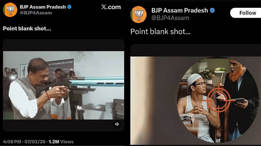 ಅಸ್ಸಾಂ ಮುಖ್ಯಮಂತ್ರಿ ಹಿಮಂತ ಬಿಸ್ವಾ ಶರ್ಮಾ ರೈಫಲ್ ಹಿಡಿದು ಅಲ್ಪಸಂಖ್ಯಾತ ಸಮುದಾಯದ ಇಬ್ಬರು ವ್ಯಕ್ತಿಗಳ ಮೇಲೆ ಸಾಂಕೇತಿಕವಾಗಿ ಗುಂಡು ಹಾರಿಸುತ್ತಿರುವ ದೃಶ್ಯವನ್ನು ‘ಪಾಯಿಂಟ್-ಬ್ಲಾಂಕ್ ಶಾಟ್’ ಎಂಬ ಶೀರ್ಷಿಕೆಯೊಂದಿಕಗೆ ಎಕ್ಸ್ನಲ್ಲಿ ಪೋಸ್ಟ್ ಮಾಡಲಾಗಿತ್ತು. ಈ ವಿಡಿಯೊ ಕುರಿತು ಆಕ್ರೋಶ ಭುಗಿಲೆದ್ದ ಕಾರಣ, ಅಸ್ಸಾಂ ಬಿಜೆಪಿ ಘಟಕವು ಆ ಪೋಸ್ಟ್ ಅನ್ನು ತೆಗೆದುಹಾಕಿದೆ.