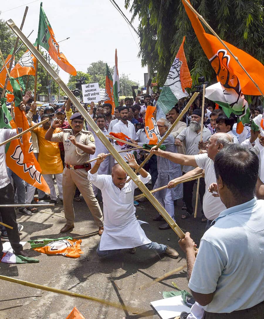 ಪಟ್ನಾ: ಬಿಜೆಪಿ, ಕಾಂಗ್ರೆಸ್ ಕಾರ್ಯಕರ್ತರ ನಡುವೆ ಸಂಘರ್ಷ