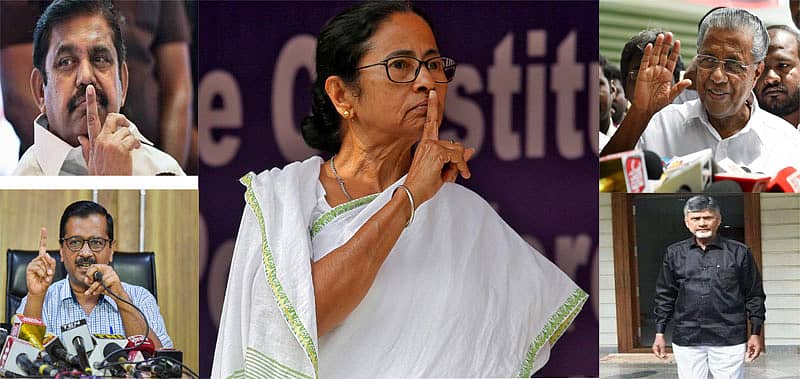ಇದೇ ರೀತಿ ಕೇಂದ್ರ ಸರ್ಕಾರದ ವಿರುದ್ಧ ಪ್ರತಿಭಟಿಸಿದ್ದು ಕೇರಳದ ಮುಖ್ಯಮಂತ್ರಿ ಪಿಣರಾಯಿ ವಿಜಯನ್, ಆಂಧ್ರ ಪ್ರದೇಶದ ಮುಖ್ಯಮಂತ್ರಿ ಚಂದ್ರಬಾಬು ನಾಯ್ಡು ಮತ್ತು ತಮಿಳುನಾಡು ಮುಖ್ಯಮಂತ್ರಿ ಇ. ಪಳನಿ ಸ್ವಾಮಿ.