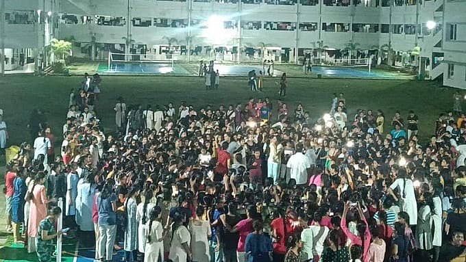 ಆಂಧ್ರಪ್ರದೇಶ ಕೃಷ್ಣಾ ಜಿಲ್ಲೆಯ ಗುಡ್ಲವೆಲ್ಲೇರುನಲ್ಲಿರುವ ಎಂಜಿನಿಯರಿಂಗ್ ಕಾಲೇಜಿನ ಎದುರು ಪ್ರತಿಭಟನೆ ನಡೆಸಿದ ವಿದ್ಯಾರ್ಥಿಗಳು