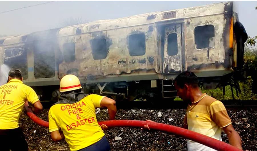 ಆಗ್ನೇಯ ರೈಲ್ವೆ ವಲಯದ ಖರಗ್ಪುರ್ ವಿಭಾಗದಲ್ಲಿನ ಬಾಲಸೋರ್ ಹಾಗೂ ಸೊರೊ ರೈಲು ನಿಲ್ದಾಣಗಳ ನಡುವೆ ರೈಲಿನಲ್ಲಿ ಬೆಂಕಿ ಕಾಣಿಸಿಕೊಂಡಿತ್ತು.