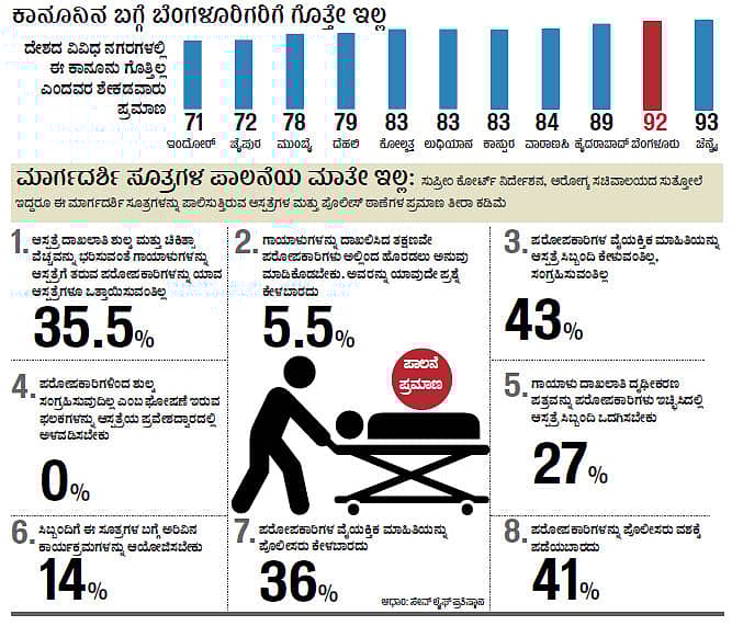 ‘ಅಪಘಾತಗಳಲ್ಲಿ ಗಾಯಗೊಂಡವರಿಗೆ ನೆರವು ನೀಡುವ ‘ಪರೋಪಕಾರಿ’ಗಳ ರಕ್ಷಣೆಗೆಂದು ಕಾನೂನು ರೂಪಿಸಿ ಎಂದು ಸುಪ್ರೀಂ ಕೋರ್ಟ್ ನಿರ್ದೇಶನ ನೀಡಿ ಎರಡು ವರ್ಷಗಳೇ ಕಳೆದಿವೆ. ಈ ಸಂಬಂಧ ರೂಪಿಸಲಾದ ಮಾರ್ಗದರ್ಶಿ ಸೂತ್ರಗಳ ಬಗ್ಗೆ ಕೇಂದ್ರ ಆರೋಗ್ಯ ಸಚಿವಾಲಯ ಎಲ್ಲಾ ರಾಜ್ಯ ಸರ್ಕಾರಗಳಿಗೂ ಸುತ್ತೋಲೆ ಹೊರಡಿಸಿದೆ.ಆದರೆ ದೇಶದ ಎಲ್ಲೆಡೆ ಸಾರ್ವಜನಿಕರಲ್ಲಿ ಈ ಬಗ್ಗೆ ಮಾಹಿತಿಯೇ ಇಲ್ಲ. ಈ ಸಂಬಂಧ ಕಾನೂನನ್ನು ರೂಪಿಸಿದ್ದು ಕರ್ನಾಟಕ ಮಾತ್ರ’ ಎನ್ನುತ್ತದೆ ಸೇವ್ ಲೈಫ್ ಪ್ರತಿಷ್ಠಾನದ ಅಧ್ಯಯನ ವರದಿ