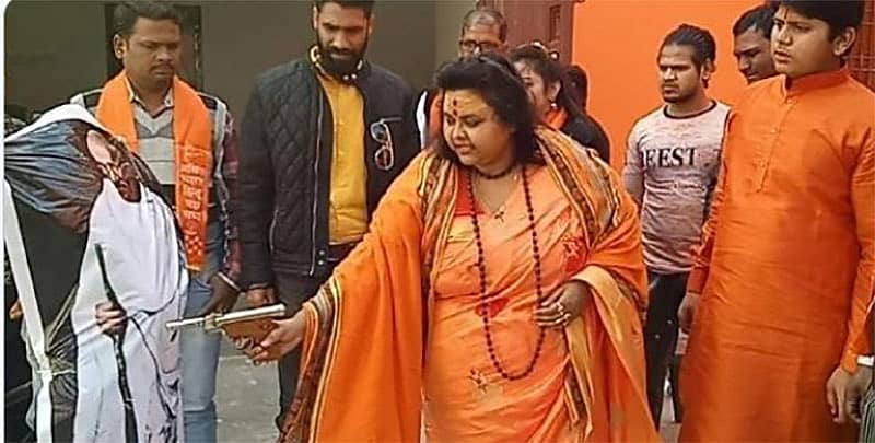 ಗಾಂಧಿ ಅವರ ಪ್ರತಿಕೃತಿಗೆಹಿಂದೂ ಮಹಾಸಭಾದ ರಾಷ್ಟ್ರೀಯ ಕಾರ್ಯದರ್ಶಿ ಪೂಜಾ ಶಕುನ್ ಪಾಂಡೆ ನಕಲಿ ಬಂದೂಕಿನಿಂದ ಗುಂಡಿಕ್ಕಿದ್ದಾರೆ. ಈ ವೇಳೆ, ಪ್ರತಿಕೃತಿಯಿಂದ ಕಡು ಕೆಂಪು ಬಣ್ಣದ ರಕ್ತದ ಮಾದರಿಯ ದ್ರಾವಣ ಹೊರ ಚಿಮ್ಮುವಂತೆ ಮಾಡಿಸಂಭ್ರಮಾಚರಿಸಲಾಗಿದೆ ಎಂದುಟೈಮ್ಸ್ ನೌ ಸುದ್ದಿವಾಹಿನಿ ವಿಡಿಯೊ ಸಹಿತ ವರದಿ ಮಾಡಿದೆ.