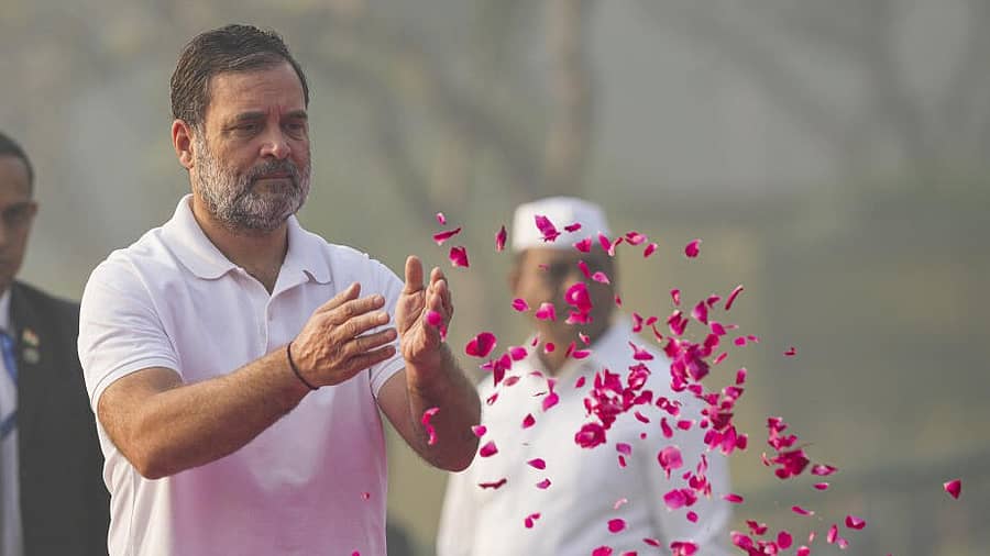 ಇಂದು (ನವೆಂಬರ್ 19) ಇಂದಿರಾ ಗಾಂಧಿ ಜನ್ಮದಿನ. ಈ ಹಿನ್ನೆಲೆಯಲ್ಲಿ, ರಾಷ್ಟ್ರ ರಾಜಧಾನಿಯಲ್ಲಿರುವ ಅವರ ಸಮಾಧಿ 'ಶಕ್ತಿ ಸ್ಥಳ'ಕ್ಕೆ ಭೇಟಿ ನೀಡಿ ಗೌರವ ಸಲ್ಲಿಸಿರುವ ರಾಹುಲ್, ಸಾಮಾಜಿಕ ಮಾಧ್ಯಮ ವೇದಿಕೆ ಎಕ್ಸ್ನಲ್ಲಿ ಫೋಟೊಗಳನ್ನು ಹಂಚಿಕೊಂಡಿದ್ದಾರೆ.