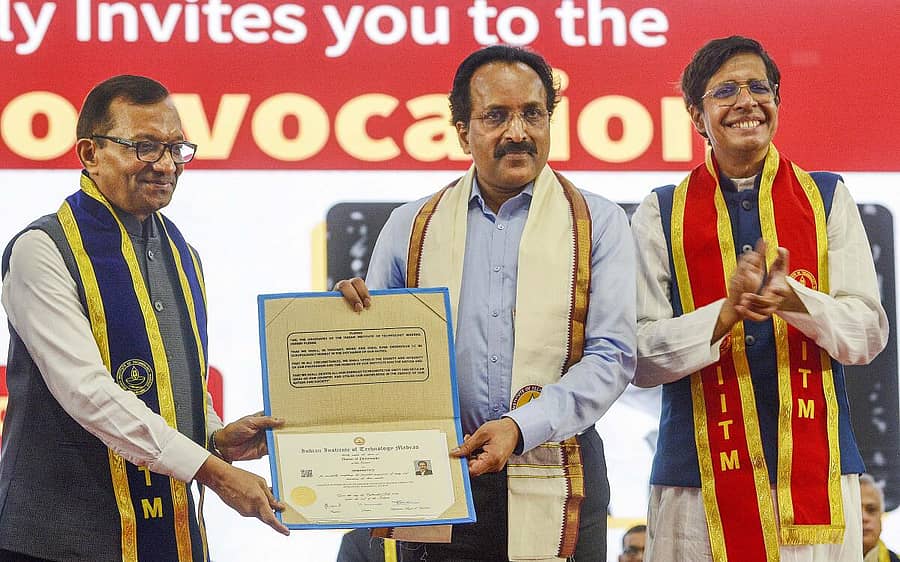 ಚೆನ್ನೈ: ಪ್ರತಿಷ್ಠಿತ ಇಂಡಿಯನ್ ಇನ್ಸ್ಟಿಟ್ಯೂಟ್ ಆಫ್ ಟೆಕ್ನಾಲಜಿ ಮದ್ರಾಸ್ನಲ್ಲಿ (ಐಐಟಿ-ಎಂ) ಮೆಕ್ಯಾನಿಕಲ್ ಎಂಜಿನಿಯರಿಂಗ್ ವಿಭಾಗದಲ್ಲಿ ಇಸ್ರೊ ಅಧ್ಯಕ್ಷ ಎಸ್.ಸೋಮನಾಥ್ ಅವರು ಪಿಎಚ್ಡಿ ಪದವಿ ಪಡೆದಿದ್ದಾರೆ. ತಮ್ಮ 60ನೇ ವಯಸ್ಸಿನಲ್ಲಿ ಅವರು ಈ ಸಾಧನೆ ಮಾಡಿರುವುದು ವಿಶೇಷ.