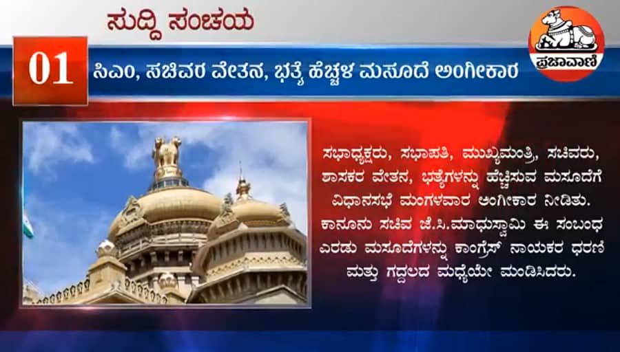 ಮುಖ್ಯಮಂತ್ರಿ, ಸಚಿವರ ವೇತನ, ಭತ್ಯೆ ಹೆಚ್ಚಳ ಮಸೂದೆ ಅಂಗೀಕಾರ ಹಾಗೂ ವಿಧಾನಸಭೆ ಕಲಾಪ ಮಾರ್ಚ್ 4ಕ್ಕೆ ಮುಂದೂಡಿಕೆ ಮತ್ತು ಹರ್ಷ ಕೊಲೆ ಪ್ರಕರಣದಲ್ಲಿ ಮತ್ತಿಬ್ಬರು ಪೊಲೀಸರ ವಶಕ್ಕೆ ಜತೆಗೆ ಇನ್ನಷ್ಟು ಟಾಪ್ ನ್ಯೂಸ್!