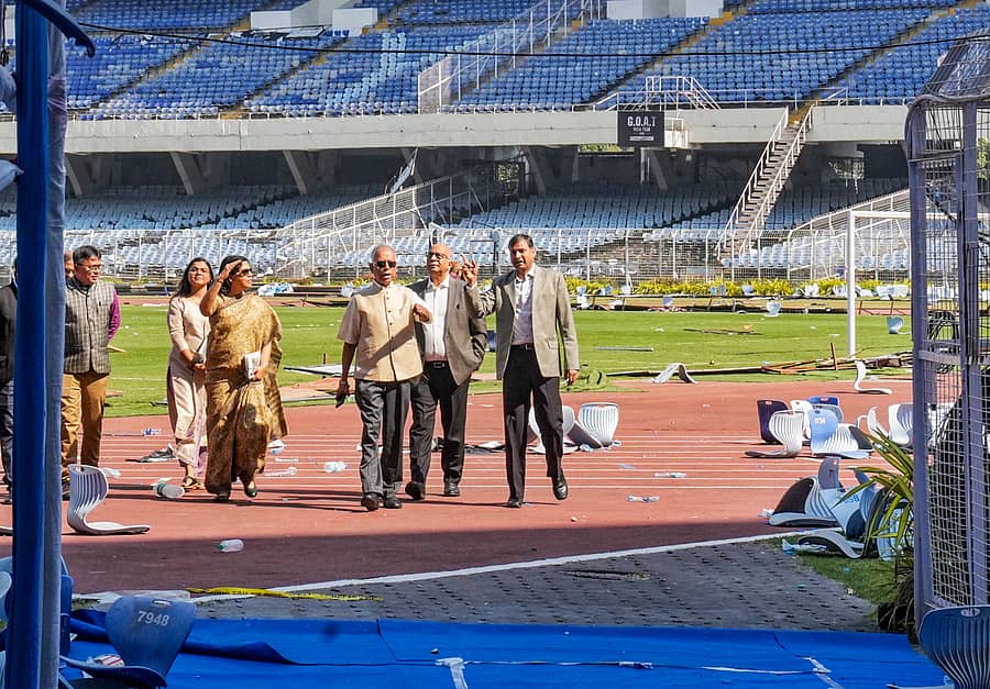 ಸರ್ಕಾರ ಘಟನೆಯ ಕುರಿತ ತನಿಖೆಗಾಗಿ ಕೋಲ್ಕತ್ತ ಹೈಕೊರ್ಟ್ನ ನಿವೃತ್ತ ನ್ಯಾಯಮೂರ್ತಿ ಆಶಿಮ್ ಕುಮಾರ್ ರೇ ನೇತೃತ್ವದಲ್ಲಿ ಉನ್ನತ ಮಟ್ಟದ ತನಿಖಾ ಸಮಿತಿ ರಚಿಸಿದೆ. ಮೂವರು ಸದಸ್ಯರ ಈ ಸಮಿತಿಯಲ್ಲಿ ರಾಜ್ಯ ಸರ್ಕಾರದ ಮುಖ್ಯ ಕಾರ್ಯದರ್ಶಿ ಮನೋಜ್ ಪಂತ್, ಗೃಹ ಇಲಾಖೆ ಕಾರ್ಯದರ್ಶಿ ನಂದಿನಿ ಚಕ್ರವರ್ತಿಯೂ ಇದ್ದಾರೆ. ಕ್ರೀಡಾಂಗಣಕ್ಕೆ ಭಾನುವಾರ ಭೇಟಿ ನೀಡಿ ಪರಿಶೀಲನೆ ನಡೆಸಿ ಸಮಿತಿ ಸದಸ್ಯರು, ಕ್ರೀಡಾಂಗಣದ ಅಧಿಕಾರಿಗಳಿಂದ ಹಾನಿಯ ವಿವರವನ್ನು ಪಡೆದರು. ವಿಡಿಯೊ ಚಿತ್ರೀಕರಣ ನಡೆಸಲಾಯಿತು.