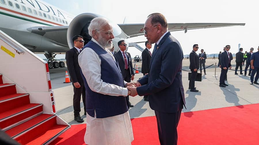 ನವದೆಹಲಿ/ಕೌಲಾಲಂಪುರ: ಕೌಲಾಲಂಪುರ ವಿಮಾನ ನಿಲ್ದಾಣಕ್ಕೆ ಆಗಮಿಸಿದ ಪ್ರಧಾನಿ ನರೇಂದ್ರ ಮೋದಿ ಅವರನ್ನು ಮಲೇಷ್ಯಾದ ಪ್ರಧಾನಿ ಅನ್ವರ್ ಇಬ್ರಾಹಿಂ ಅವರು ಆತ್ಮೀಯವಾಗಿ ಬರಮಾಡಿಕೊಂಡರು.