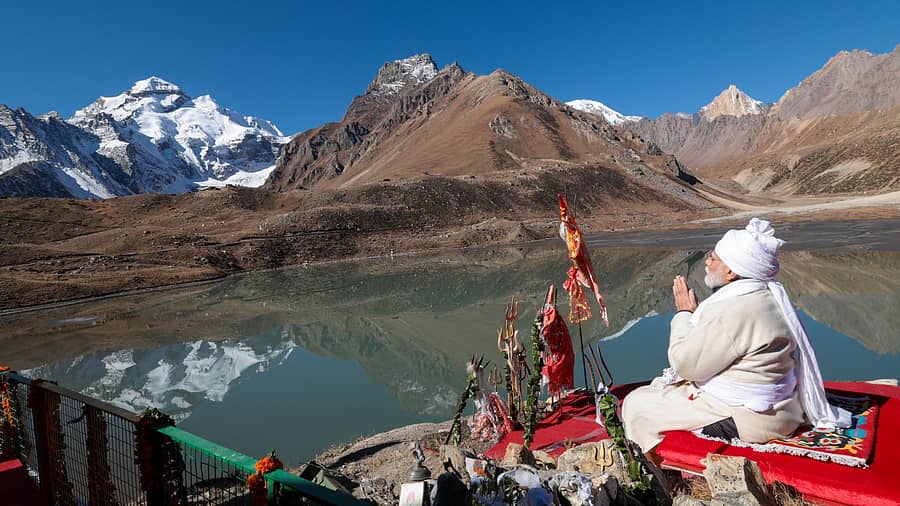 ಉತ್ತರಾಖಂಡ: ವಿವಿಧ ಅಭಿವೃದ್ಧಿ ಯೋಜನೆಗಳಿಗೆ ಚಾಲನೆ ನೀಡಲು ಉತ್ತರಾಖಂಡಕ್ಕೆ ತೆರಳಿರುವ ಪ್ರಧಾನಿ ನರೇಂದ್ರ ಮೋದಿ ಅವರು ಪಿಥೋರಗಢದ ಪಾರ್ವತಿ ಕುಂಡ್ಗೆ ಭೇಟಿ ನೀಡಿ ಆದಿ ಕೈಲಾಸ್ ತುದಿಯಲ್ಲಿ ಶಿವನಿಗೆ ಪೂಜೆ ಸಲ್ಲಿಸಿದ್ದಾರೆ.