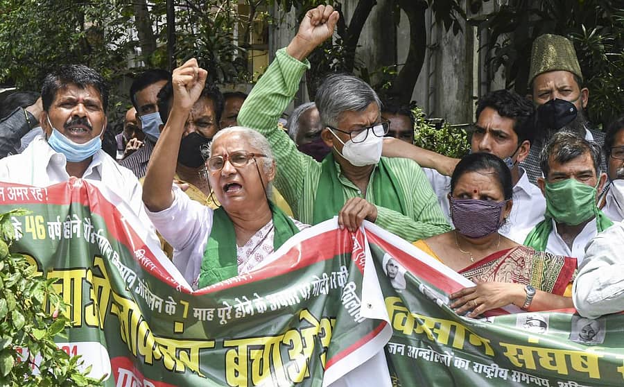 ನವದೆಹಲಿ: ಕೇಂದ್ರದ ಕೃಷಿ ಮತ್ತು ರೈತ ಕಲ್ಯಾಣ ಖಾತೆಯನ್ನು ಶಿವರಾಜ್ ಸಿಂಗ್ ಚೌಹಾಣ್ ಅವರಿಗೆ ನೀಡಿರುವುದನ್ನು ಖಂಡಿಸಿ ಬುಧವಾರ ರಾಷ್ಟ್ರ ರಾಜಧಾನಿಯನ್ನು ಸಂಯುಕ್ತ ಕಿಸಾನ್ ಮೋರ್ಚಾ ಸಂಘಟನೆಯ ಸದಸ್ಯರು ಪ್ರತಿಭಟನೆ ನಡೆಸಿದರು.