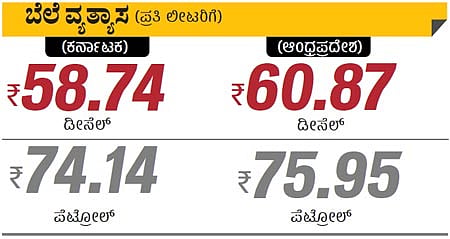 ಹಲವು ವರ್ಷಗಳಿಂದಲೂ ಆಂಧ್ರಪ್ರದೇಶ ಹಾಗೂ ಕರ್ನಾಟಕದಲ್ಲಿ ಪೆಟ್ರೋಲ್, ಡೀಸೆಲ್ ಮೇಲಿನ ತೆರಿಗೆ ವ್ಯತ್ಯಾಸವಿದೆ. ಇದರಿಂದಾಗಿ ಆಂಧ್ರದಲ್ಲಿ ನಮ್ಮ ರಾಜ್ಯಕ್ಕಿಂತಲೂ ಪ್ರತಿ ಲೀಟರ್ ಪೆಟ್ರೋಲ್ ದರದಲ್ಲಿ ಸುಮಾರು ₨ 3 ಕಡಿಮೆ ಇರುತ್ತಿತ್ತು.