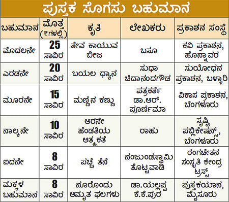‘ಅತ್ಯುತ್ತಮ ಪ್ರಕಾಶನ ಪ್ರಶಸ್ತಿ’ಯು ರೂ 1 ಲಕ್ಷ ನಗದು, ಪ್ರಶಸ್ತಿ ಫಲಕ, ಪುತ್ಥಳಿ ಒಳಗೊಂಡಿದೆ. ‘ಡಾ. ಜೆ.ಪಿ. ರಾಜರತ್ನಂ ಸಾಹಿತ್ಯ ಪರಿಚಾರಕ ಪ್ರಶಸ್ತಿ’ ಮತ್ತು ‘ಡಾ. ಅನುಪಮಾ ನಿರಂಜನ ವೈದ್ಯಕೀಯ ಮತ್ತು ವಿಜ್ಞಾನ ಸಾಹಿತ್ಯ ಪ್ರಶಸ್ತಿ’ಗಳು ಕ್ರಮವಾಗಿ ರೂ 50 ಸಾವಿರ ಮತ್ತು ರೂ25 ಸಾವಿರ ನಗದು, ಪ್ರಶಸ್ತಿ ಫಲಕ, ಪ್ರಶಸ್ತಿ ಪುತ್ಥಳಿಗಳನ್ನು ಒಳಗೊಂಡಿವೆ. ಇದೇ 17ರಂದು ಕನ್ನಡ ಭವನದ ನಯನ ಸಭಾಂಗಣದಲ್ಲಿ ಪ್ರಶಸ್ತಿಗಳ ಪ್ರದಾನ ಸಮಾರಂಭ ನಡೆಯಲಿದೆ.
