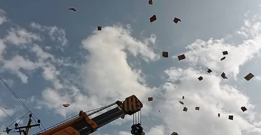 ಸಂಗಮ ಟಾಕೀಸ್ ಮುಂಭಾಗ ತೆರೆದ ವಾಹನದಲ್ಲಿ ಸಾಗುತ್ತಿದ್ದಾಗ ₹ 10, 20, 50 ಮುಖಬೆಲೆಯ ಎರಡು ಕಂತೆಗಳನ್ನು ಎಸೆದರು.