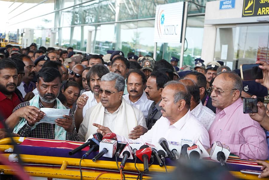 ಊರಗಡೂರಿನಲ್ಲಿ ಈಚೆಗೆ ಗುಂಪು ಹಲ್ಲೆಯಿಂದ ಹತ್ಯೆಗೀಡಾದ ಎಸ್ಸೆಸ್ಸೆಲ್ಸಿ ವಿದ್ಯಾರ್ಥಿ ಸಂಕೇತ್ ಪೋಷಕರನ್ನು ವಿಮಾನ ನಿಲ್ದಾಣಕ್ಕೆ ಕರೆಸಿಕೊಂಡು ಸಾಂತ್ವನ ಹೇಳಿದ ಮುಖ್ಯಮಂತ್ರಿ ಸಿದ್ದರಾಮಯ್ಯ, ಅವರಿಗೆ ರಾಜ್ಯ ಸರ್ಕಾರದಿಂದ ₹10 ಲಕ್ಷ ಹಾಗೂ ಶಾಲಾ ಶಿಕ್ಷಣ ಹಾಗೂ ಸಾಕ್ಷರತಾ ಸಚಿವ ಮಧು ಬಂಗಾರಪ್ಪ ಅವರು ವೈಯಕ್ತಿಕವಾಗಿ ಕೊಟ್ಟ ₹5 ಲಕ್ಷ ಪರಿಹಾರ ಮೊತ್ತದ ಚೆಕ್ ವಿತರಿಸಿದರು.