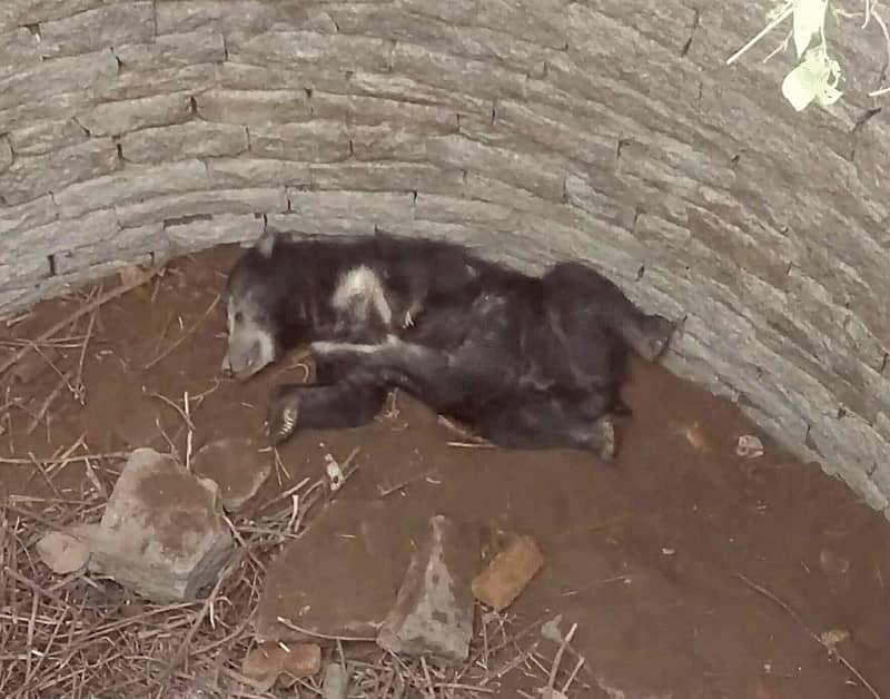 ಬಾವಿಯ ಹತ್ತಿರ ಜೇನು ಗೂಡು ಕಟ್ಟಿದ್ದು,ಜೇನು ತಿನ್ನಲು ಹೋಗಿ ಬಾವಿಯ ಒಳಗಡೆ ಬಿದ್ದಿದೆ. ಬಾವಿ ಇಪ್ಪತ್ತು ಅಡಿ ಅಳವಿದೆ.