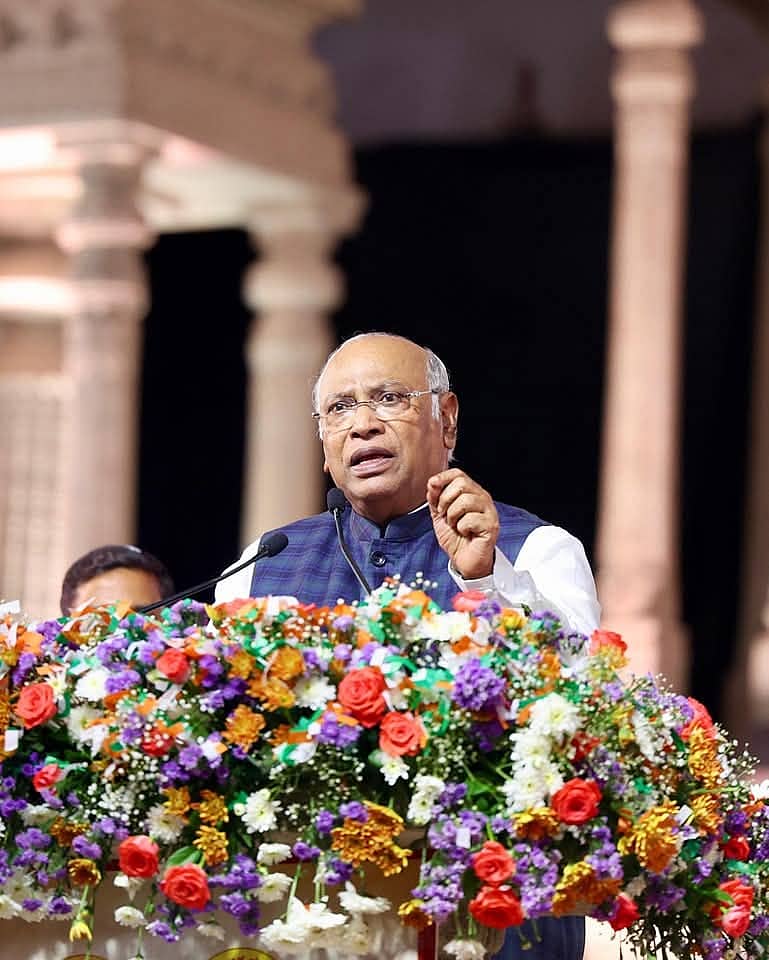 ಖರ್ಗೆ ಆಕ್ರೋಶ ಕಂಡ ಡಿಸಿಎಂ ಡಿಕೆ ಶಿವಕುಮಾರ್, ಓಡಿ ಬಂದು ಪಕ್ಕದಲ್ಲಿ ನಿಂತು ಅವರ ಮಾತು ಆಲಿಸಿದರು.