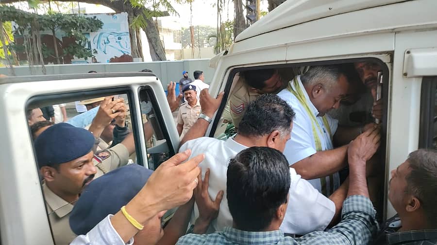 ಕಾರ್ಯಕರ್ತರೊಂದಿಗೆ ಬಂದ ಶಾಸಕ ಟಿ.ಎಸ್.ಶ್ರೀವತ್ಸ, ಬಿಜೆಪಿ ನಗರ ಘಟಕದ ಅಧ್ಯಕ್ಷ ಎಲ್.ನಾಗೇಂದ್ರ, ಮುಖಂಡರಾದ ಸಂದೇಶ್ ಸ್ವಾಮಿ, ಪ್ರತಾಪ ಸಿಂಹ, ಶಿವಕುಮಾರ್ ಅವರನ್ನು ಪೊಲೀಸರು ತಡೆದರು. ಈ ಹಂತದಲ್ಲಿ ಪೊಲೀಸರ ಜೊತೆಗೆ ವಾಗ್ವಾದ ನಡೆಯಿತು.