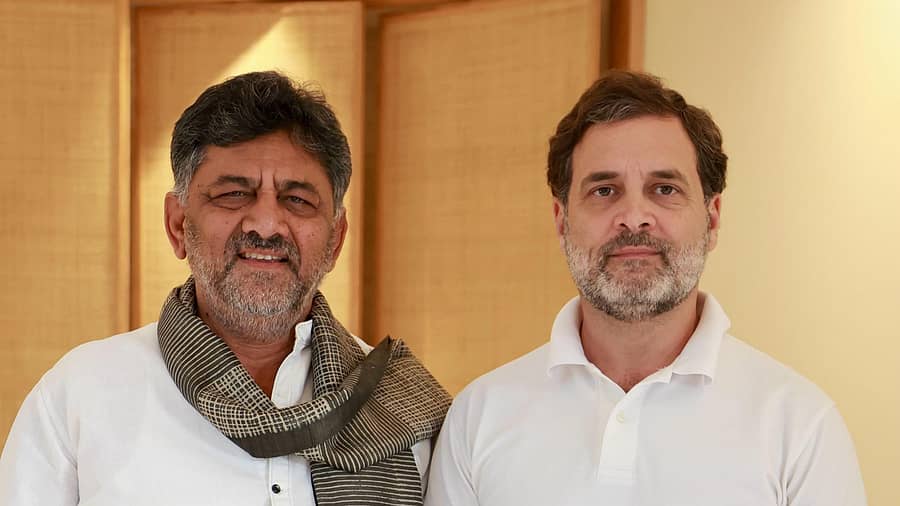 ನವದೆಹಲಿ: ‘ಅಧಿಕಾರ ಹಂಚಿಕೆ ಸೂತ್ರ’ದಂತೆ ಕರ್ನಾಟಕ ಸರ್ಕಾರದ ನಾಯಕತ್ವಕ್ಕಾಗಿ ತಾಳ್ಮೆಯಿಂದ ಕಾಯುತ್ತಿರುವ ಉಪಮುಖ್ಯಮಂತ್ರಿ ಡಿ.ಕೆ. ಶಿವಕುಮಾರ್ ಅವರು ಕಾಂಗ್ರೆಸ್ನ ವರಿಷ್ಠ ನಾಯಕ ರಾಹುಲ್ ಗಾಂಧಿ ಹಾಗೂ ಸಂಸದೆ ಪ್ರಿಯಾಂಕಾ ಗಾಂಧಿ ವಾದ್ರಾ ಅವರನ್ನು ಗುರುವಾರ ಇಲ್ಲಿ ಭೇಟಿ ಮಾಡಿ ಹಕ್ಕೊತ್ತಾಯ ಮಂಡಿಸಿದರು.