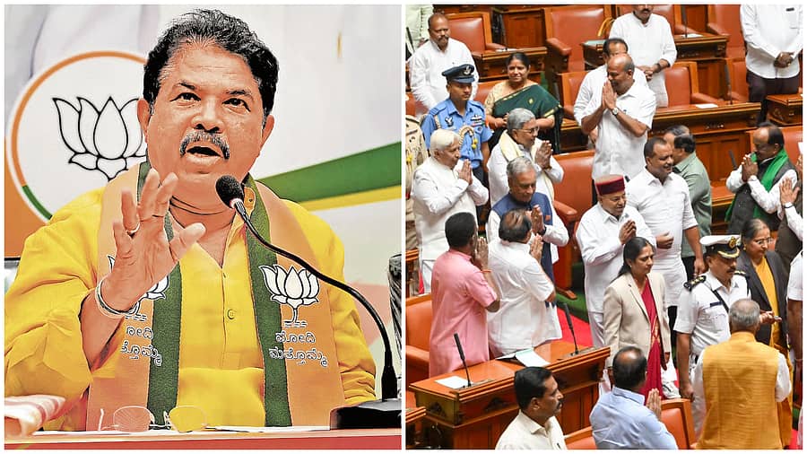 ‘ರಾಜ್ಯಪಾಲರು ಭಾಷಣ ಮುಗಿಸಿ ನಿರ್ಗಮಿಸುವ ಸಂದರ್ಭದಲ್ಲಿ ಸದನದಲ್ಲಿ ಹಾಜರಿದ್ದ ವಿಧಾನಸಭೆ ಮತ್ತು ವಿಧಾನ ಪರಿಷತ್ತಿನ ಸದಸ್ಯರುಗಳು ಅವರನ್ನು ಅಡ್ಡಗಟ್ಟಿ, ತಳ್ಳಾಡಿ ನೂಕುನುಗ್ಗಲು ಉಂಟು ಮಾಡಿ, ರಾಜ್ಯಪಾಲರಿಗೆ ಆಗೌರವ ತೋರಿದ್ದಾರೆ’ ಎಂದು ಅವರು ಹೇಳಿದ್ದಾರೆ.