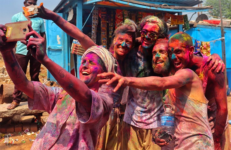 ಹೊಸಪೇಟೆ: ಇಲ್ಲಿನ ವಿಶ್ವ ಪಾರಂಪರಿಕ ತಾಣ ಹಂಪಿಯಲ್ಲಿ ಮಂಗಳವಾರ ವಿದೇಶಿ ಪ್ರವಾಸಿಗರು ಬಣ್ಣದಲ್ಲಿ ಮಿಂದೆದ್ದು ಹೋಳಿ ಹಬ್ಬ ಸಂಭ್ರಮಿಸಿದರು.