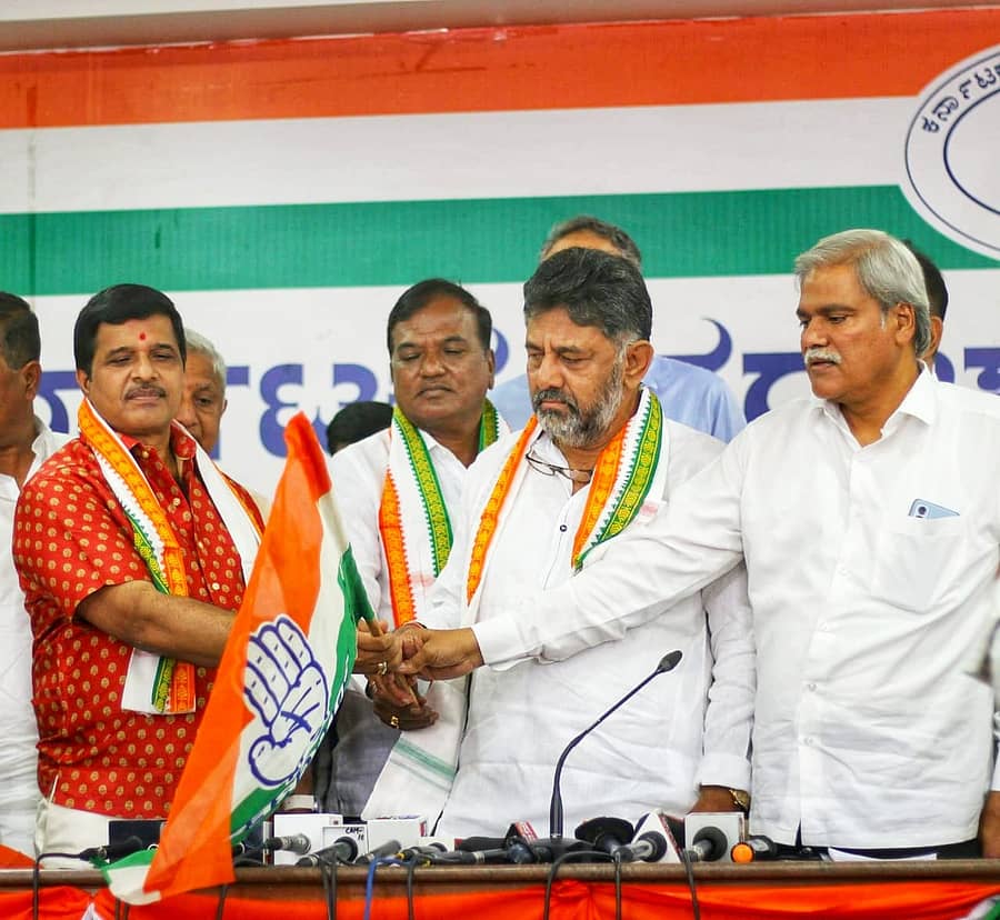 ಕ್ವೀನ್ಸ್ ರಸ್ತೆಯ ಕೆಪಿಸಿಸಿ ಕಚೇರಿಯಲ್ಲಿ ನಡೆದ ಸರಳ ಕಾರ್ಯಕ್ರಮದಲ್ಲಿ ಇಬ್ಬರಿಗೂ ಕಾಂಗ್ರೆಸ್ ಧ್ವಜ ನೀಡಿ ಶಿವಕುಮಾರ್ ಪಕ್ಷಕ್ಕೆ ಬರಮಾಡಿಕೊಂಡರು.