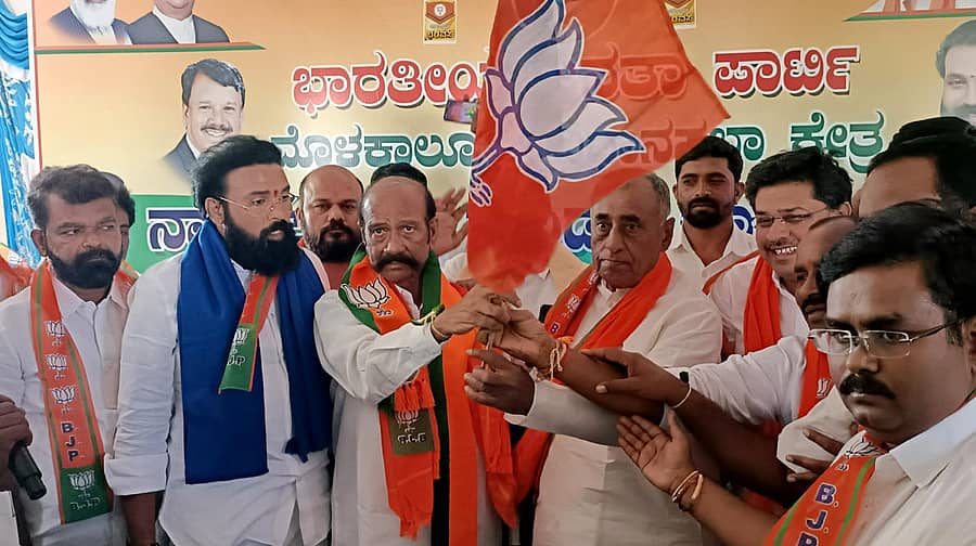 ನಾಯಕನಹಟ್ಟಿ (ಚಿತ್ರದುರ್ಗ ಜಿಲ್ಲೆ): ಮೊಳಕಾಲ್ಮುರು ಕ್ಷೇತ್ರದ ಮಾಜಿ ಶಾಸಕ ಎಸ್. ತಿಪ್ಪೇಸ್ವಾಮಿ ಸಚಿವ ಶ್ರೀರಾಮುಲು ನೇತೃತ್ವದಲ್ಲಿ ಭಾನುವಾರ ಕ್ಷೇತ್ರ ವ್ಯಾಪ್ತಿಯ ನಾಯಕನಹಟ್ಟಿಯಲ್ಲಿ ನಡೆದ ಸಮಾರಂಭದಲ್ಲಿ ಬಿಜೆಪಿಗೆ ಮರಳಿದರು.