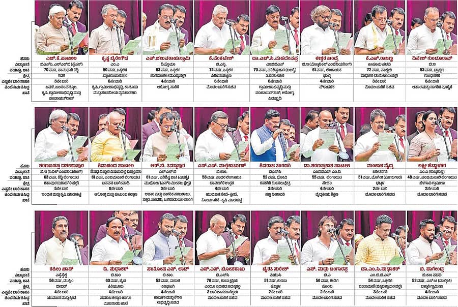 ಸಿದ್ದರಾಮಯ್ಯ ನೇತೃತ್ವದ ಕಾಂಗ್ರೆಸ್ ಸರ್ಕಾರದ ಮೊದಲ ಸಂಪುಟ ವಿಸ್ತರಣೆ ಶನಿವಾರ (27ರಂದು) ರಾಜಭವನದಲ್ಲಿ ನಡೆಯಿತು. ರಾಜ್ಯಪಾಲ ಥಾವರಚಂದ್ ಗೆಹಲೋತ್ ಅವರು ನೂತನ ಸಚಿವರಿಗೆ ಪ್ರಮಾಣವಚನ ಬೋಧಿಸಿದರು. ಸಿದ್ದರಾಮಯ್ಯ, ಉಪಮುಖ್ಯಮಂತ್ರಿ ಡಿ.ಕೆ. ಶಿವಕುಮಾರ್, ವಿಧಾನಸಭಾಧ್ಯಕ್ಷ ಯು.ಟಿ. ಖಾದರ್ ವೇದಿಕೆಯಲ್ಲಿದ್ದರು.