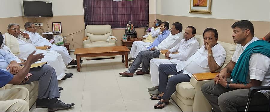 ಕೆಪಿಸಿಸಿ ಕಚೇರಿಯಲ್ಲಿ ನಡೆದ ಚರ್ಚೆಯಲ್ಲಿ ವಿರೋಧ ಪಕ್ಷದ ನಾಯಕ ಸಿದ್ದರಾಮಯ್ಯ, ಕೆಪಿಸಿಸಿ ಅಧ್ಯಕ್ಷ ಡಿ.ಕೆ ಶಿವಕುಮಾರ್. ಮಂಡ್ಯ ಜಿಲ್ಲೆಯ ನಾಯಕ ಚೆಲುವರಾಯಸ್ವಾಮಿ, ನರೇಂದ್ರ ಸ್ವಾಮಿ ಸೇರಿದಂತೆ ಹಲವು ನಾಯಕರು ಭಾಗವಹಿಸಿದರು.