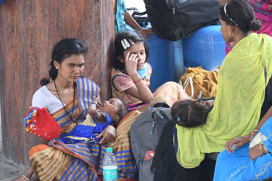 ಅಂಗೈಲಿಜೀವ ಇಟ್ಕೊಂಡು, ಊರಿಗೆ ಹೋಗುವ ದಾರಿಯಲ್ಲಿರುವವಲಸೆ ಕಾರ್ಮಿಕರ ಬದುಕಿನ ಚಿತ್ರಣವನ್ನು ಕ್ಯಾಮೆರಾ ಕಣ್ಣಿನಲ್ಲಿ ಕಟ್ಟಿಕೊಟ್ಟಿದ್ದಾರೆ ಹಿರಿಯ ಛಾಯಾಗ್ರಾಹಕ ವಿಶ್ವನಾಥ ಸುವರ್ಣಅಮ್ಮನೆದೆಗಾನಿ ಮಲಗಿರುವ ಎಳೆಮಗುವಿಗೆ ಯಾವ ಪರಿವೆಯೂ ಇಲ್ಲ. ಹಾಲು ಹೀರಿದರೂ ಬರುತ್ತಿಲ್ವಲ್ಲ ಅನ್ನುವ ಸಂಕಟ. ಉಣ್ಣದೆ ಹಾಲುಣಿಸುವುದು ಹೇಗೆ? ಅಸಹಾಯಕತನದ ದೃಷ್ಟಿ ಅಮ್ಮನ ಕಣ್ಣಲ್ಲಿ. ಹಸಿವಾದರೂ ಏನೂ ದೊರೆಯದು, ಅಮ್ಮ ತಾರಳು, ಅಪ್ಪನಿಗೆ ಸಿಗದು ಎಂಬುದು ಗೊತ್ತಿರುವಂತೆ ಆಡುವುದು ಮರೆತು, ಹಾಡುವುದೂ ಮರೆತು, ಬೆನ್ನಿಗಂಟಿಸಿಕೊಂಡಿರುವ ಹೊಟ್ಟೆಗೆ ಇವರ ಪರಿಸ್ಥಿತಿಯ ಅರಿವಿಲ್ಲ. ಹೊತ್ತು ಹೊತ್ತಿಗೆ ತಾಳ ಹಾಕುವುದು ಅದು ಬಿಟ್ಟಿಲ್ಲ.ಎಲ್ಲರನ್ನೂ ಕರೆಕರೆದು ಜಾಗ ಕೊಟ್ಟು ನೇವರಿಸಿದ ಬೆಂಗಳೂರು ಇದೀಗ ಅವರಿಗೆ ಪರವೂರಾಗಿದೆ. ಉದ್ದಾನುದ್ದ ಹೆಬ್ಬಾವಿನಂತೆ ಮಲಗಿರುವ ರಸ್ತೆಗಳು, ಮೇಲ್ಸೇತುವೆಗಳು ಸದ್ಯಕ್ಕೆ ಕಾಲು ಚಾಚಿ ಕೂರಲಷ್ಟೇ ಅನುಕೂಲ ಮಾಡಿಕೊಡುವಂತಿವೆ.ಮನೆಯೆಂದುಕೊಂಡಿದ್ದ ಜೋಪಡಿಗಳನ್ನು ಬಿಡುವ ಮುನ್ನವೂ ಬಡಿದುಕೊಂಡಿರುವ ರೊಟ್ಟಿ, ಪಲ್ಯೆಗಳು ಹಸಿವು ತಣಿಸುತ್ತಿಲ್ಲ. ಹಂಚಿಕೊಂಡು ತಿಂದರೂ.. ಮುಂದಿನೂಟಕ್ಕೇನು ಎಂಬ ಪ್ರಶ್ನೆ ಹಣೆಗಂಟಿನಲ್ಲಿ. ಸಿಮೆಂಟಿನ ಚೀಲದಲ್ಲಿ ಬಟ್ಟೆಗಳು... ಕುಂಚಿಗೆ ಕುಲಾವಿ ಕಟ್ಟಿಕೊಂಡ ಮಕ್ಕಳು, ಊರಿಗೆ ಹೋಗಬೇಕೆನ್ನುವ ನಿರೀಕ್ಷೆ, ಬಸ್ಸಿನ ವ್ಯವಸ್ಥೆ ಆಗದ ನಿರಾಸೆ... ಅದೆಷ್ಟು ನೋಟಗಳು... ಜೀವನವಿಲ್ಲಿ ದುಬಾರಿ.. ಜೀವವೇ ಅಗ್ಗ ಎಂಬಂತೆ!!