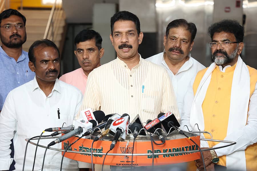 ಬಿಜೆಪಿ ಕಚೇರಿಯಲ್ಲಿ ಸುದ್ದಿಗಾರರ ಜೊತೆ ಮಾತನಾಡಿದ ಅವರು, ಕರ್ನಾಟಕದಲ್ಲಿ ಸಿಎಂ, ಡಿಸಿಎಂ ನಡುವಿನ ಅಧಿಕಾರದ ಕಾದಾಟದ ಪರಿಣಾಮವಾಗಿ ಸಿದ್ದರಾಮಯ್ಯರನ್ನು ಮನೆಗೆ ಕಳಿಸಲು ಶಿವಕುಮಾರ್, ಡಿ.ಕೆ.ಶಿವಕುಮಾರರನ್ನು ಜೈಲಿಗೆ ಕಳುಹಿಸಲು ಸಿದ್ದರಾಮಣ್ಣ ಪ್ರಯತ್ನದಲ್ಲಿದ್ದಾರೆ. ಈ ಕಾದಾಟದಲ್ಲಿ ಕರ್ನಾಟಕ ಬಡವಾಗಿದೆ ಎಂದು ವಿಶ್ಲೇಷಿಸಿದರು.