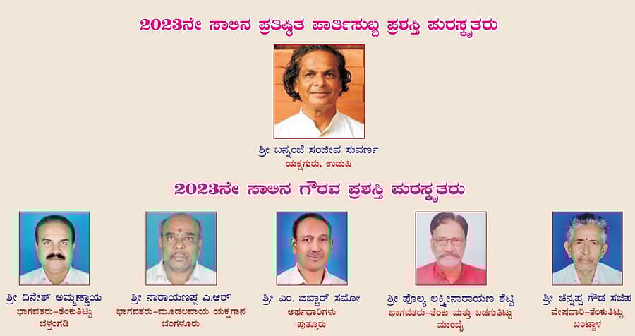 ತೆಂಕು ತಿಟ್ಟು ಭಾಗವತರಾದ ದಿನೇಶ್ ಅಮ್ಮಣ್ಣಾಯ ಹಾಗೂ ಪೊಲ್ಯ ಲಕ್ಷ್ಮೀನಾರಾಯಣ ಶೆಟ್ಟಿ, ಮೂಡಲಪಾಯ ಭಾಗವತರಾದ ನಾರಾಯಣಪ್ಪ ಎಂ.ಆರ್., ಅರ್ಥಧಾರಿ ಎಂ.ಜಬ್ಬಾರ್ ಸಮೊ ಸಂಪಾಜೆ ಅವರು 2023ನೇ ಸಾಲಿನ ಯಕ್ಷಗಾನ ಅಕಾಡೆಮಿ ಗೌರವ ಪ್ರಶಸ್ತಿಗೆ ಭಾಜನರಾಗಿದ್ದಾರೆ.
