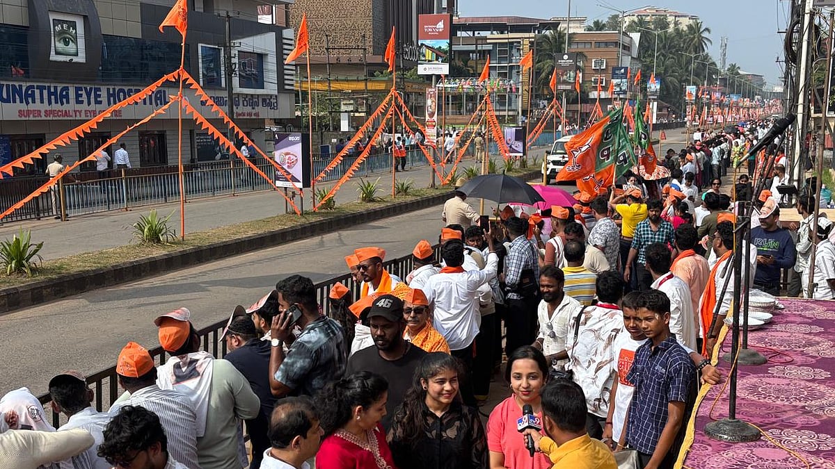 ಉಡುಪಿ ಬಂದಿಳಿದ ಪ್ರಧಾನಿ ಮೋದಿಯವರು ರೋಡ್ ಶೋ ನಡೆಸಿದರು. ಈ ವೇಳೆ ಅವರನ್ನು ನೋಡಲು ಸಾವಿರಾರು. ಜನರು ದಾರಿಯುದ್ದಕ್ಕೂ ನಿಂತಿದ್ದರು.
