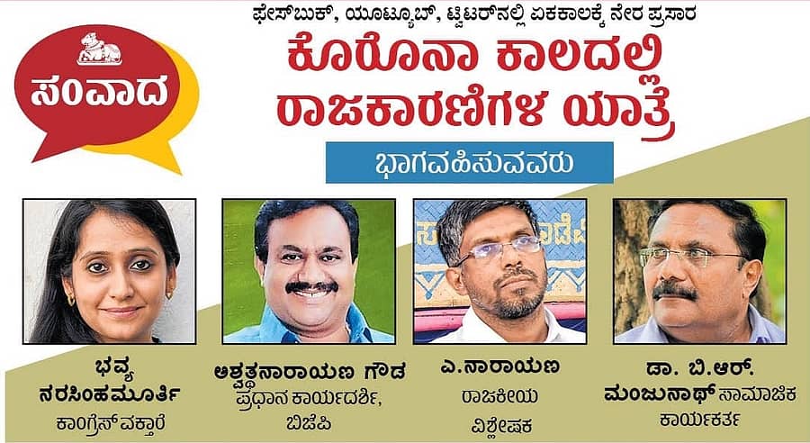 ಈ ಕುರಿತು ‘ಪ್ರಜಾವಾಣಿ’ ಸೋಮವಾರ ಹಮ್ಮಿಕೊಂಡಿದ್ದ ‘ಕೊರೊನಾ ಕಾಲದಲ್ಲಿ ರಾಜಕಾರಣಿಗಳ ಯಾತ್ರೆ’ ಎಂಬ ವಿಷಯ ಕುರಿಯ ಸಂವಾದದಲ್ಲಿ ಬಿಜೆಪಿ ರಾಜ್ಯ ಪ್ರಧಾನ ಕಾರ್ಯದರ್ಶಿ ಅಶ್ವತ್ಥನಾರಾಯಣಗೌಡ, ಕಾಂಗ್ರೆಸ್ ವಕ್ತಾರೆ ಭವ್ಯ ನರಸಿಂಹಮೂರ್ತಿ, ರಾಜಕೀಯ ವಿಶ್ಲೇಷಕ ಎ.ನಾರಾಯಣ, ಸಾಮಾಜಿಕ ಕಾರ್ಯಕರ್ತ ಡಾ. ಬಿ.ಆರ್.ಮಂಜುನಾಥ್ ಅವರು ಹಂಚಿಕೊಂಡ ಅಭಿಪ್ರಾಯಗಳ ಸಂಕ್ಷಿಪ್ತ ವಿವರ ಇಲ್ಲಿದೆ.