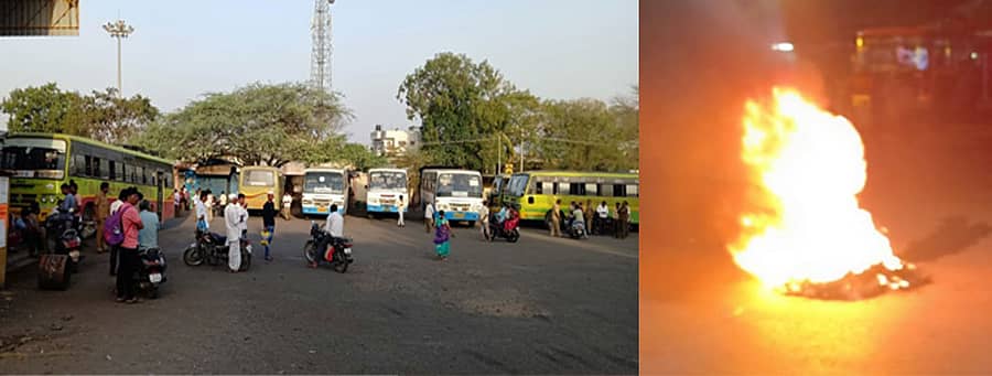 ಮುಂಜಾನೆಯಿಂದಲೇ ಕೆಲವು ಸಂಘಟನೆಗಳವರು ಹಳೆಯ ಟೈರುಗಳಿಗೆ ಬೆಂಕಿ ಹಾಕಿ ಆಕ್ರೋಶ ವ್ಯಕ್ತಪಡಿಸಿದರು. ರಾಜ್ಯ ರಸ್ತೆ ಸಾರಿಗೆ ನಿಗಮದ ಬಸ್ಸುಗಳಿಗೆ ಓಡಾಡಲು ಅವಕಾಶ ಕೊಟ್ಟಿಲ್ಲ. ಬಂದ್ಗೆ 36 ಸಂಘಟನೆಗಳು ಬೆಂಬಲ ನೀಡಿವೆ. ಅಂಗಡಿಗಳು ತೆರೆದಿಲ್ಲ.
