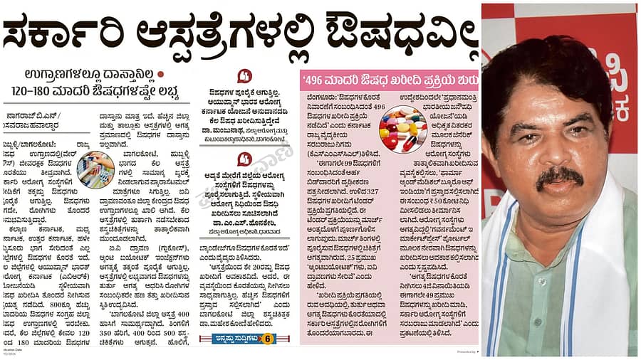 ‘ಪ್ಯಾರಾಸಿಟಮಾಲ್ನಿಂದ ಆರಂಭವಾಗಿ ಅಗತ್ಯವಾದ 800ಕ್ಕೂ ಅಧಿಕ ಔಷಧಿಗಳು ಲಭ್ಯವಿಲ್ಲವೆಂದು ಈ ಹಿಂದೆಯೇ ಹೇಳಿದ್ದೆ. ಈಗಲೂ ಯಾವುದೇ ಔಷಧ ದಾಸ್ತಾನಿಲ್ಲ. ಈ ಮೂಲಕ ಆರೋಗ್ಯ ಇಲಾಖೆ ಅನಾರೋಗ್ಯ ಪೀಡಿತವಾಗಿದೆ. ಆಸ್ಪತ್ರೆಗಳ ನಿರ್ವಹಣೆಯ ಹಣದಿಂದ ಔಷಧಿ ಖರೀದಿಸುವ ದುಸ್ಥಿತಿಗೆ ಸರ್ಕಾರ ಬಂದಿದೆ. ಸಾಲ ಮಾಡಿ ಔಷಧಿ ಖರೀದಿಸುವ ಸ್ಥಿತಿ ಬಂದಿದೆ’ ಎಂದು ಅವರು ಹೇಳಿದರು.